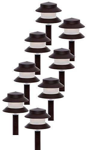 kroger Low Voltage Landscape Path Lights - 35 Lumen Modern 2-Tier Outdoor 2.5 Watt Landscape Light GreenLighting (8 Pack, Dark Brown)